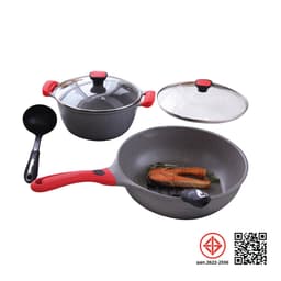 - เครื่องครัวอะลูมิเนียมชนิดทนทานพิเศษเคลือบหินอ่อน สามารถใช้กับเตาได้ทุกชนิด ทั้งเตาแก๊ส เตาเซรามิก และเตาแม่เหล็กไฟฟ้า