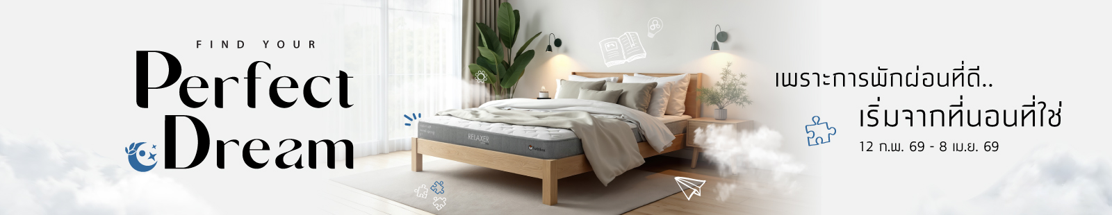 ที่นอน THERAFLEX รุ่นโดซซี่ - สีขาว/เทาอ่อน